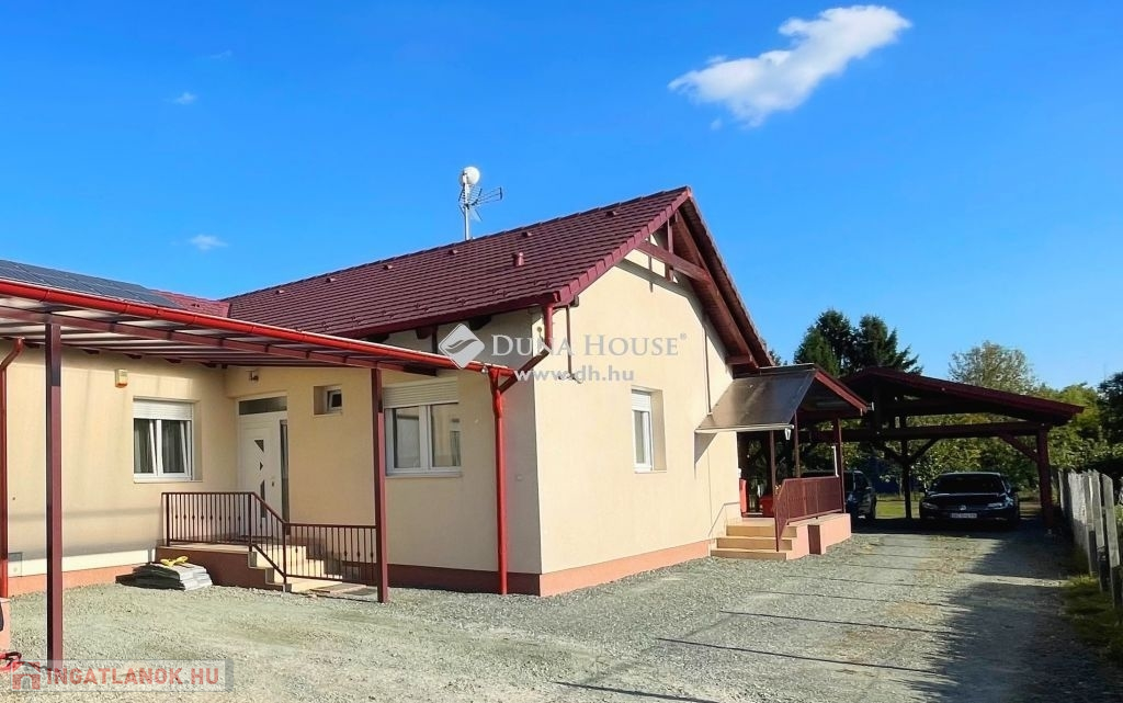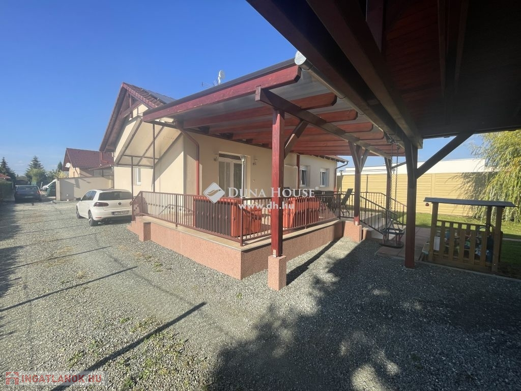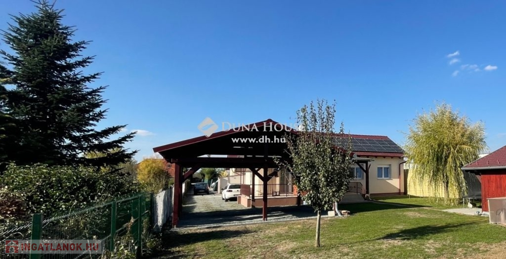 Az épület mellett két autónak fedett beálló van kialakítva..A telek hátsó felén egy melléképület is helyet kapott, mely, tárolásra vagy műhelynek, hobbihelyiségnek is alkalmas. A ház mögötti telekrész parkosított, füvesített...