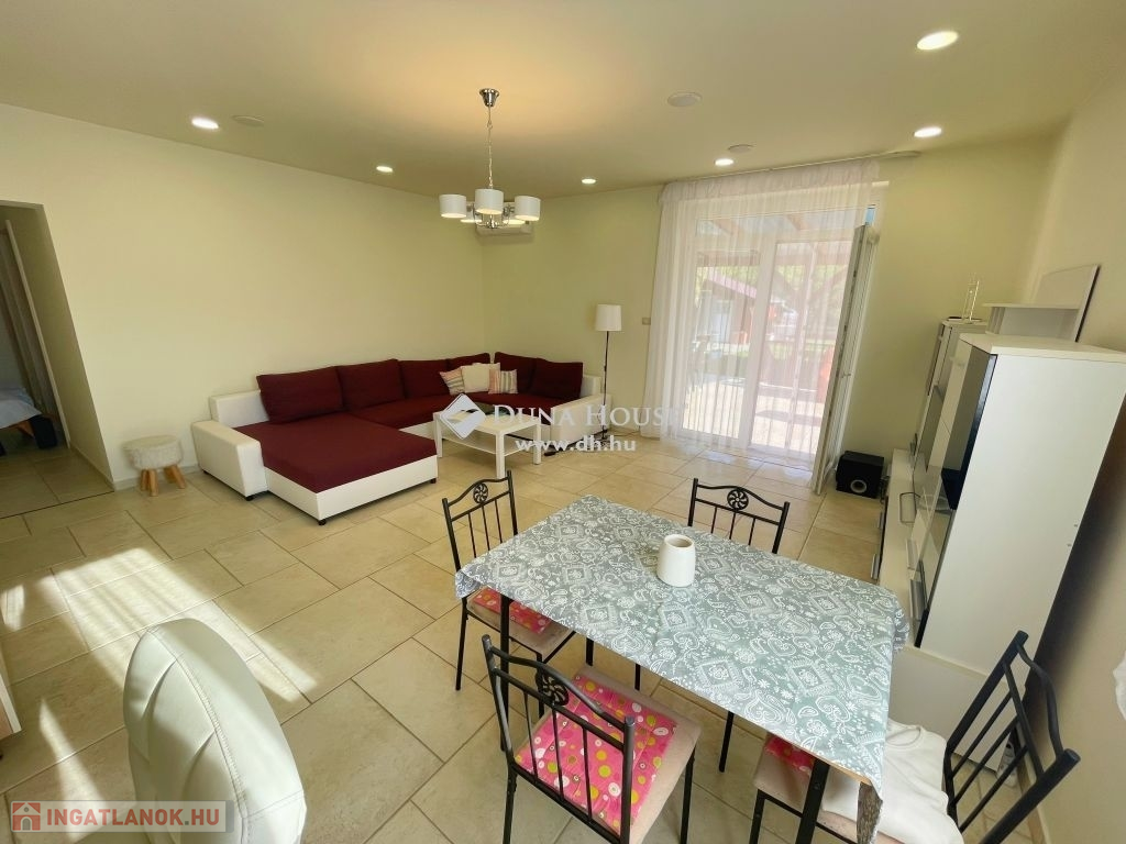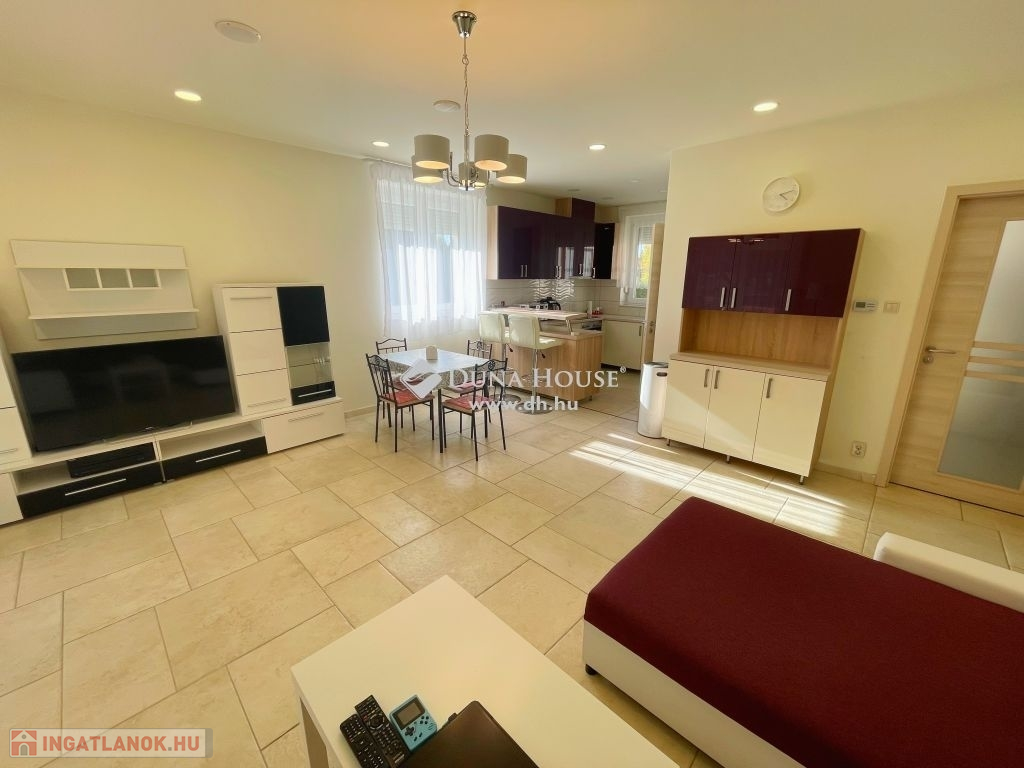 Az ingatlan egy csendes, magánútról megközelíthető belső telken bújik meg, 2017-ben épült. A ház külső klasszikus megjelenése és kimagasló műszaki tartalma, modern letisztult belsővel van ötvözve. Az épület ikerházas kialakítású, egyszintes , a szomszédtól jól elszeparált, teljesen privát életteret biztosít.. Egy fedett terasz felőli előtér vezet az amerikai konyhás nappaliba, melyhez 26 m2 fedett terasz csatlakozik a kert felé fordulva, déli tájolással.