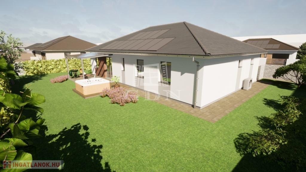 Az esővíz egy 5 m3-es csapadékgyűjtőbe lesz bekötve, szikkasztóval ellátva, ami kiválóan alkalmas a növényzet öntözésére. Így nem kell kutat fúrni és nem borul fel a terület vízháztartása.