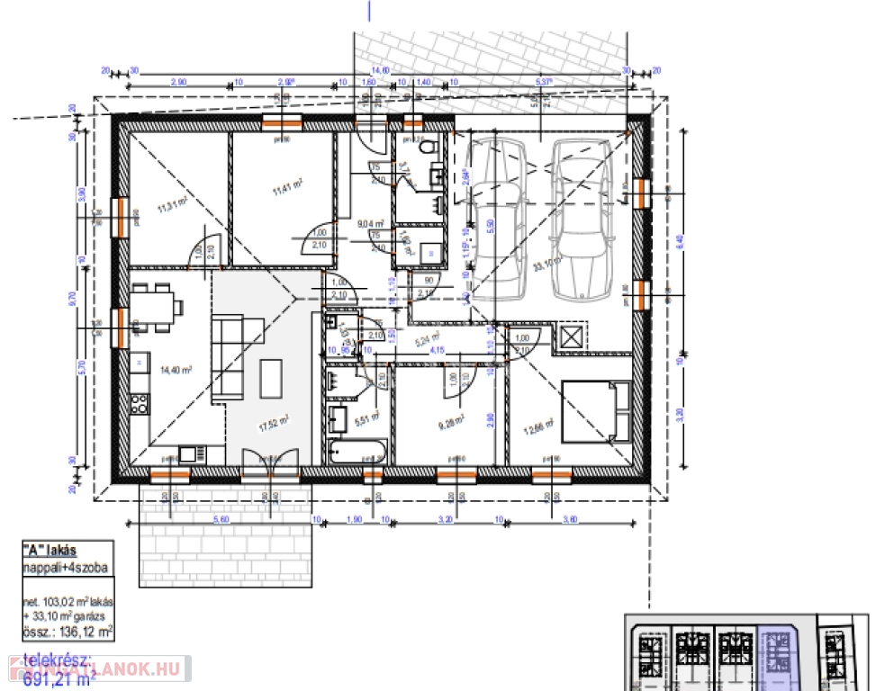Telek utcafronti, jobb és baloldali kerítés illetve az ingatlanok közti elválasztó kerítés (felületmintás betonelem) építése 1.75-2 m magasságban.