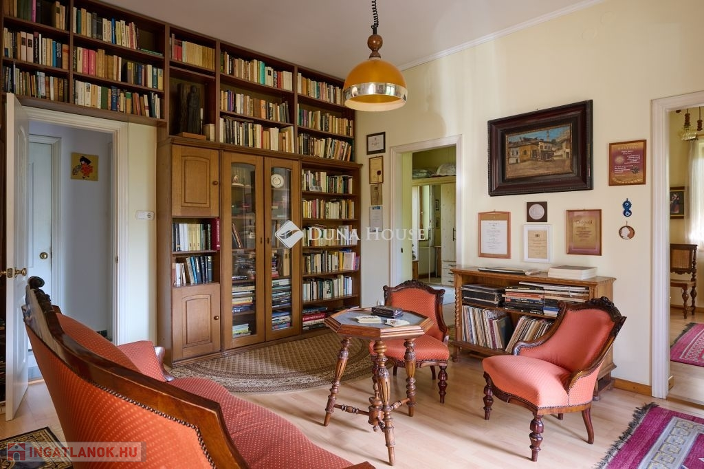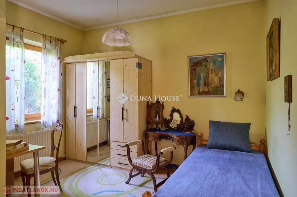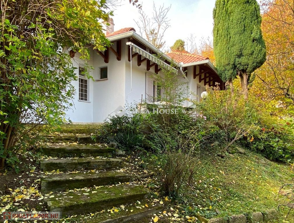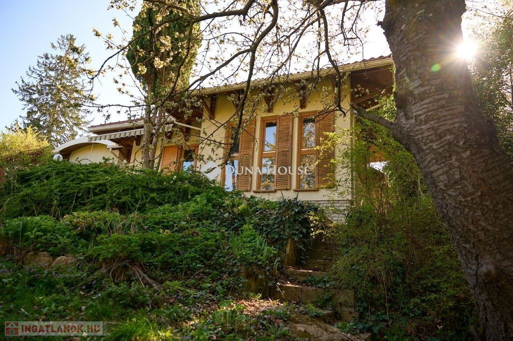 Az ingatlan egy csendes, forgalommentes zsákutcában bújik meg,a telken belül az épületet zöld oázis veszi körül. A ház külső modern-mediterrán megjelenése, polgárias belsővel ötvözött. A lakótér 120 m2, minden oldalról világos, körbenapozott. Tágas, kényelmes terek jellemzik, több irányból teraszkapcsolatos, keleti oldala panorámás kilátást biztosít a város felé.. Helyiségei: előtér-étkező-konyha-kamra-nappali-könyvtárszoba-hálószoba1-hálószoba2-fürdő+wc-közlekedő-külön wc.