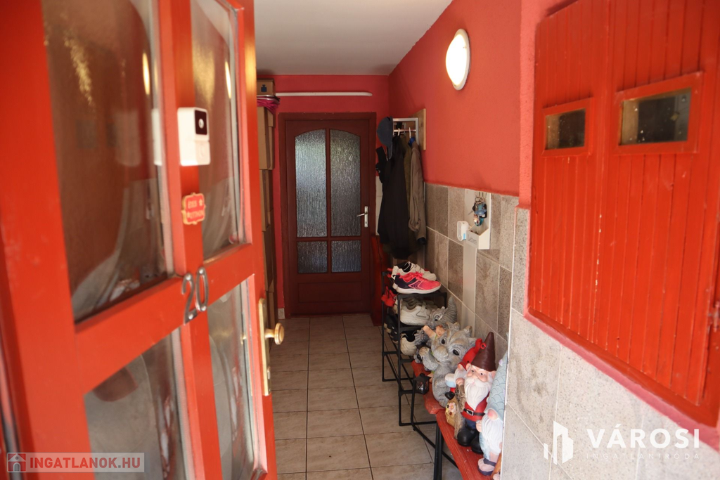 Az ingatlanba lépéskor egy nagy előtér várja Önt/Önöket, amiből nyilik a szépen kialakitott konyha és étkező, illetve itt egy WC is található.