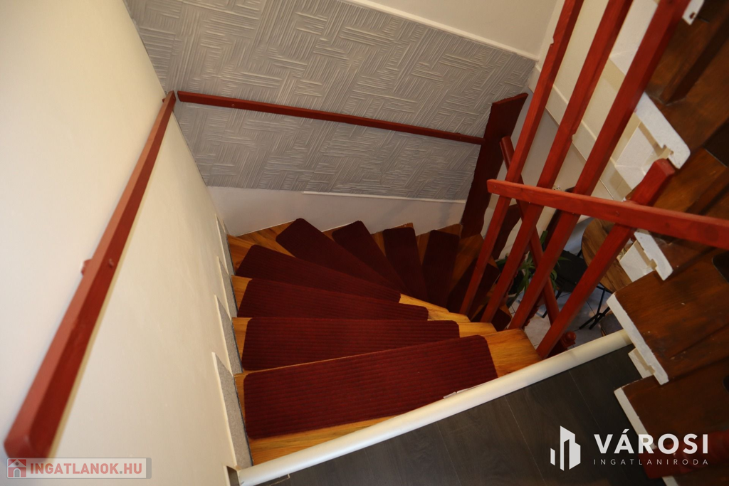 Az igényes fából készült csigalépcsőkön lépdelve két hálószoba és egy nagy fürdő várja az új tulajdonost/tulajdonosokat.