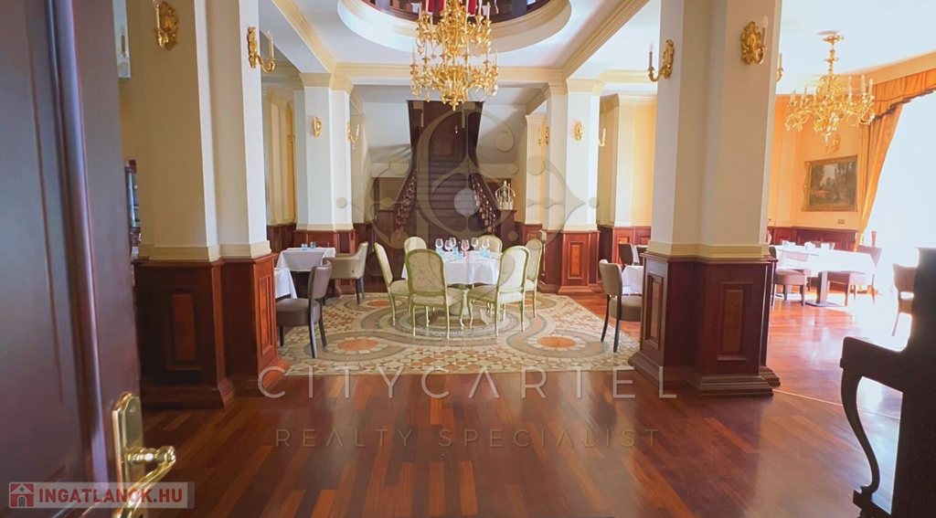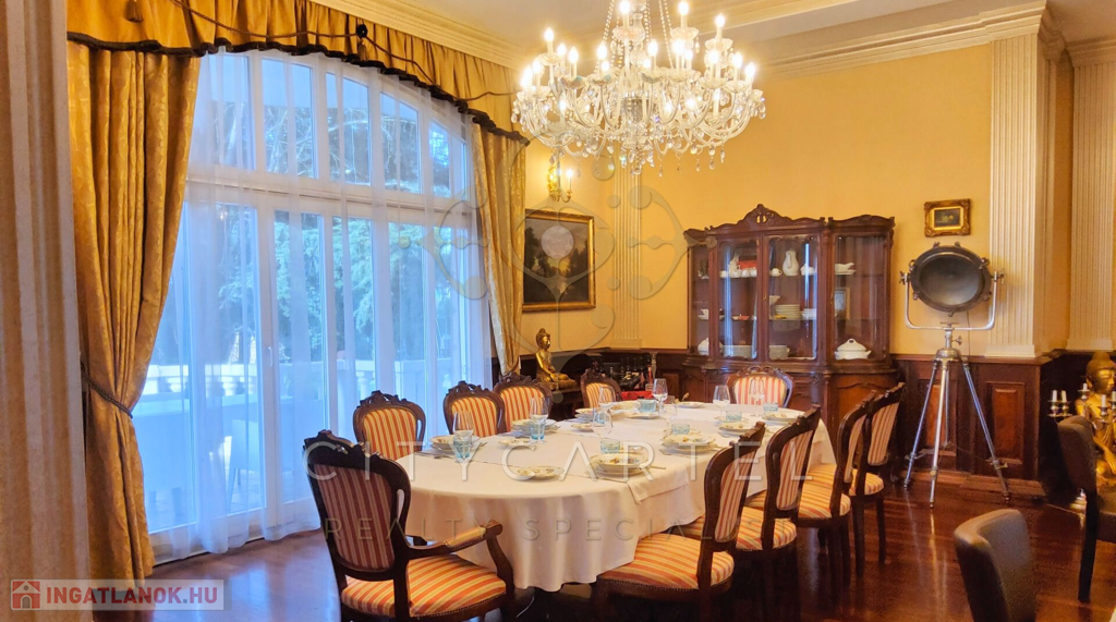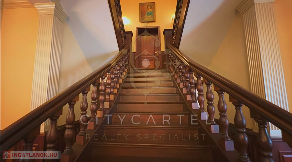 A néhány lépcsőn megközelíthető, impozáns előteraszról nyíló főbejáraton belépve tágas, 122 nm-es nappali fogadja az érkezőket, amely tökéletes választás lehet nagyobb fogadások és rendezvények elegáns helyszínének.