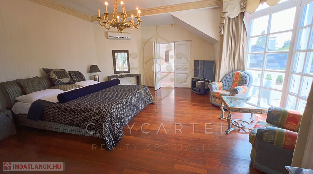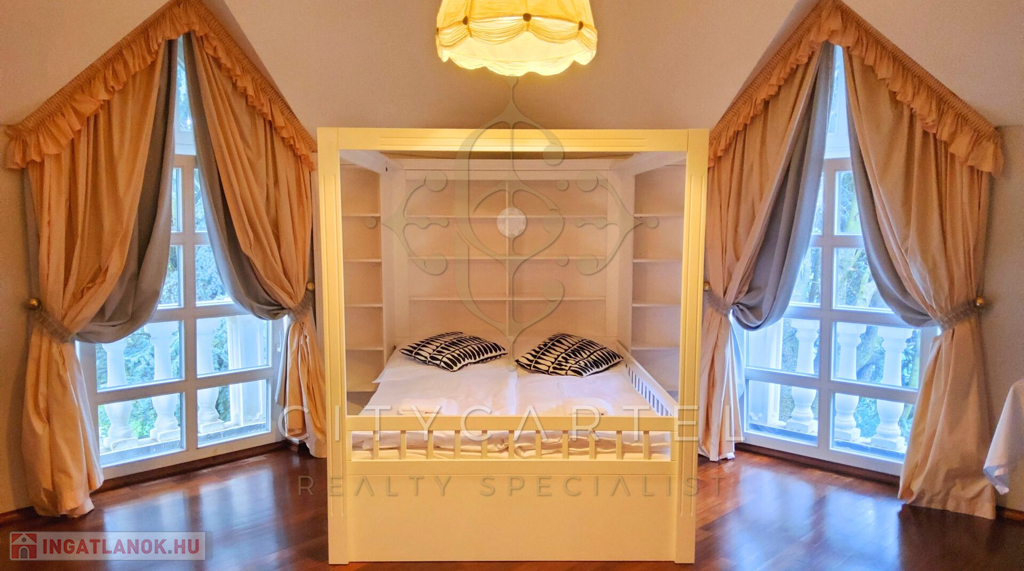 Minden helyiségben minőségi selyemtapéta borítja a falakat, az ablakokat pedig egyedi tervezésű selyemfüggönyök keretezik.