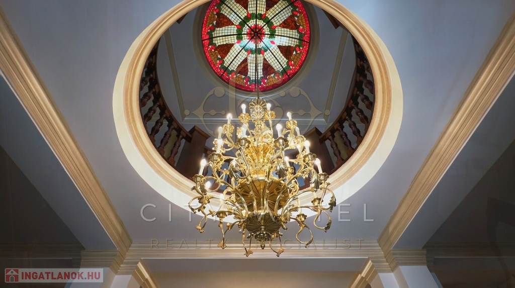 A nappali központi eleme, igazi különlegesség az épületen belül a csaknem 30 nm-es, 3500 lapból rakott, egyedi római kőburkolat, amely a nappali padlózatát díszíti - valamint a 120 nm-es galéria ólomüveg kupolája.