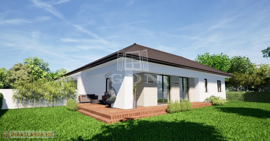 A Wienerberger Porotherm téglából épülő házak magas műszaki tartalommal épülnek. Tetőszerkezete C22 I. osztályú , rovar, gomba és lángmentesítővel kezelt faanyaggal kerül kivitelezésre. Fedése Terran vagy Bramac cseréppel történik, az összes rendszer tartozékkal, előírások szerint helyenként hófogóval. Bádogos szerkezetek, a külső vízelvezetések ereszcsatornái, a lefolyócsövei és az egyéb bádogos szerkezetek 0.6 mm vastag antracit acéllemezből készülnek. Homlokzati falfelületek 15 cm vastag EPS hőszigetelő rendszert, a lábazatok 10 cm vastag XPS lábazati hőszigetelő rendszert kapnak. A padozatokba 10 cm vastag teherbíró EPS hab hőszigetelés kerül. A födém hőszigetelése 30 cm vastag ásványgyapot szigetelőanyaggal történik. Külső nyílászárói műanyag, három rétegű üvegezéssel szerelt, fokozottan hang-és hőszigeteltek. Fűtése, a háztartási helyiségben elhelyezett 10Kw teljesítményű Gree Versati 3 hőszivattyúval történik, padlófűtéses hőleadással szabályozható termosztáttal. A hőszivattyú biztosítja a melegvizet is, egy 200 literes hőtárolós víztartállyal. Az ingatlanban riasztó, kaputelefon, klíma előkészítés történik. Beltéri ajtók, hideg-meleg burkolatok, szaniterek, csaptelepek választhatók. Garázs 19.5 m2, 7 239 000 Ft. Ha bővebb tájékoztatást szeretne, kérem keressen. Vegye igénybe irodánk szolgáltatásait. Hitelügyintézésben is segítünk.