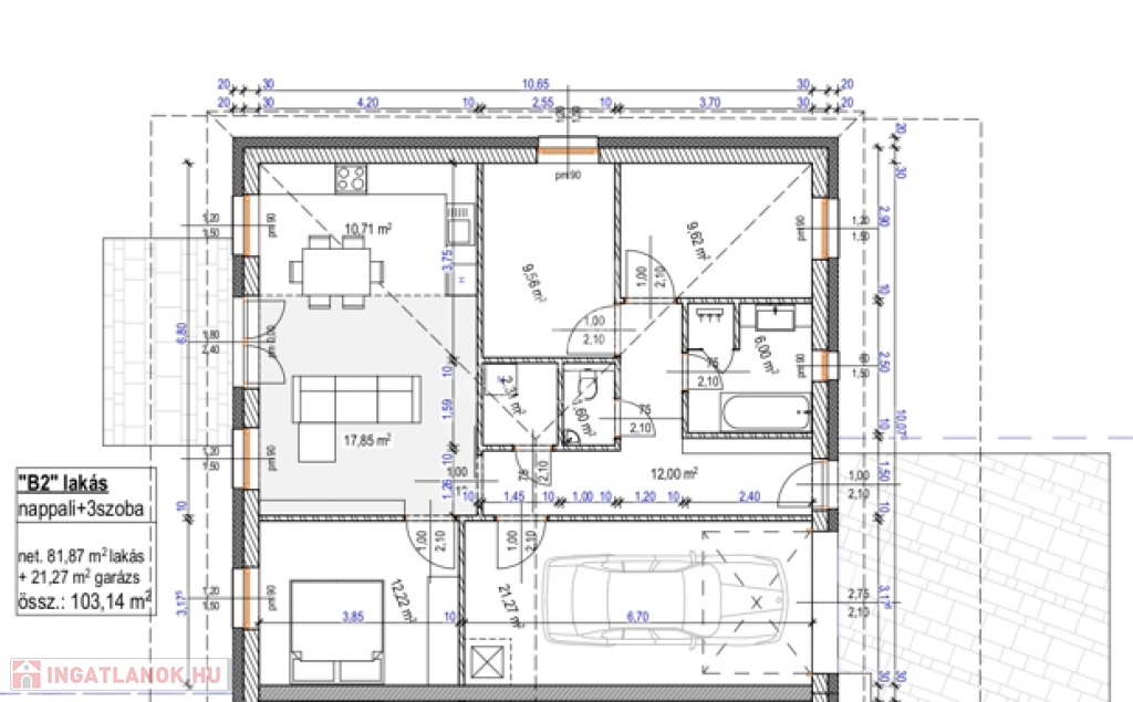 10 cm-es kerámia válaszfalat, a szerelvény a 7,5 cm-es szerkezetben kerül kialakításra. A födémet a tetőszerkezet elemei adják, amihez gipszkarton álmennyezet kerül rögzítésre, kialakítva egy 20 m2-es pakolásra alkalmas területet, amit padlásfeljáró segítségével lehet elérni. A teherhordó falak és a hanggátló fal is gipszkartonlap borítást kap, így az egész belső tér egy homogén, rendkívül pontos felületet fog alkotni.