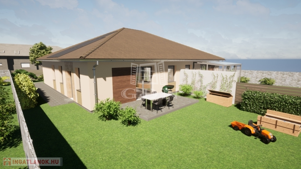 Az esővíz egy 5 m3-es csapadékgyűjtőbe lesz bekötve, szikkasztóval ellátva, ami kiválóan alkalmas a növényzet öntözésére. Így nem kell kutat fúrni és nem borul fel a terület vízháztartása.