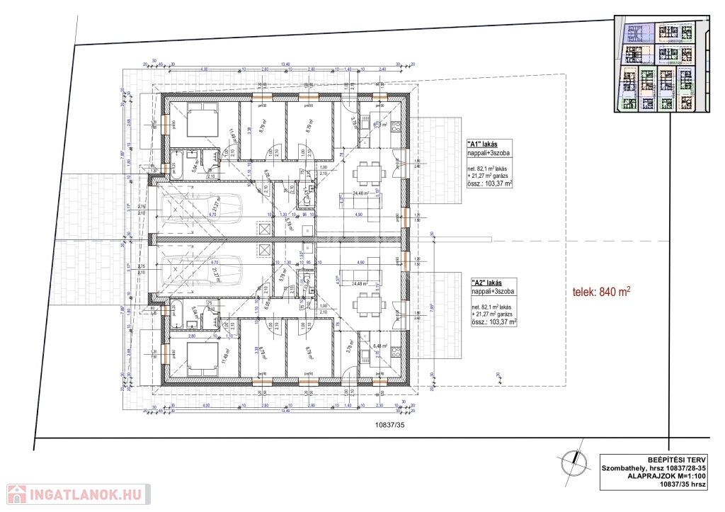 Telek utcafronti, jobb és baloldali kerítés illetve az ingatlanok közti elválasztó kerítés (felületmintás betonelem) építése 1.75-2 m magasságban.