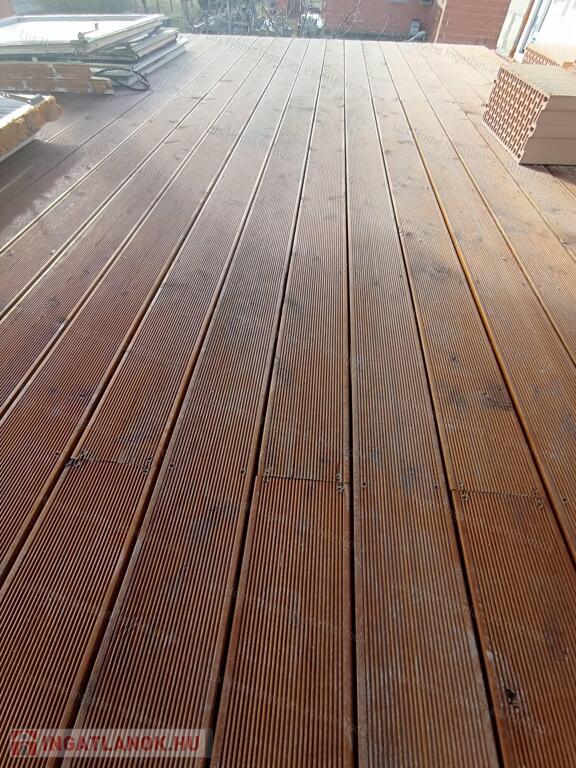 -A földszinten és az emeleten is egységesen 20nm a terasz került kialakításra, biztosítva minden kényelmi funkciót. A felső teraszt egy 40*40-es , 6 méteres fenyő gerenda tartja