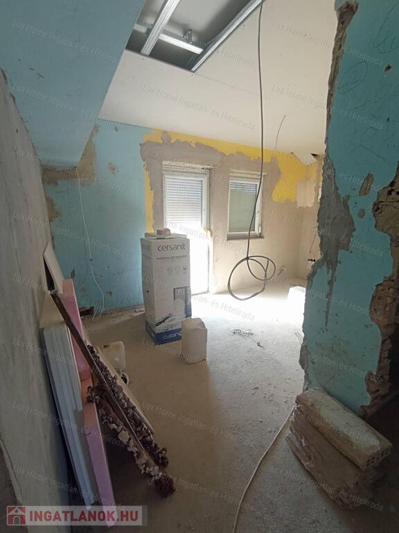 - az emeletre egy külső lépcsőn keresztül jutunk fel, melynek kialakítása az új tulajdonosra vár. Ott egy teljesen külön álló otthon fogad minket, mely alapból 2 szoba + nappali, de mivel a tetőtér is beépíthetó, így nagycsaládosoknak is ideális lehet.