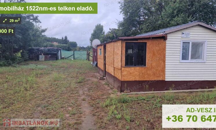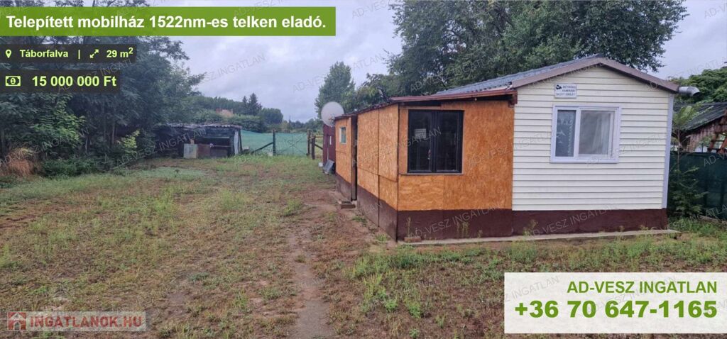 Táborfalván kínálunk eladásra egy telepített, téliesített SUNROLLERN238W tipusú mobilházat 1522m2-es telken.