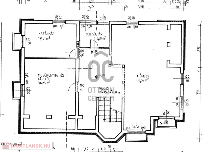 Az alagsori rész 140 nm nagyságú 3 fő részből tevődik össze, külön bejárattal, 2 méter magasságig burkolattal ellátott, sőt! ipari áram helységenként több ponton is rendelkezésre áll.