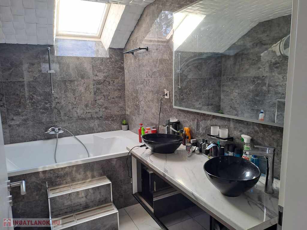 - Az emeleten is található egy tágas erkély, valamint egy hatalmas fürdőkáddal és dupla mosdóval, interaktív okos tükörrel LED világítással rendelkező fürdőszoba.