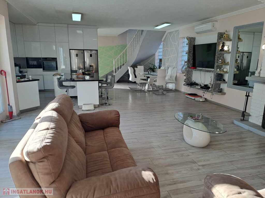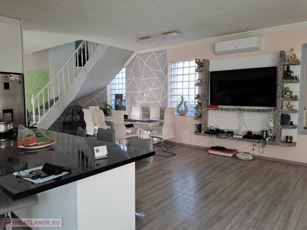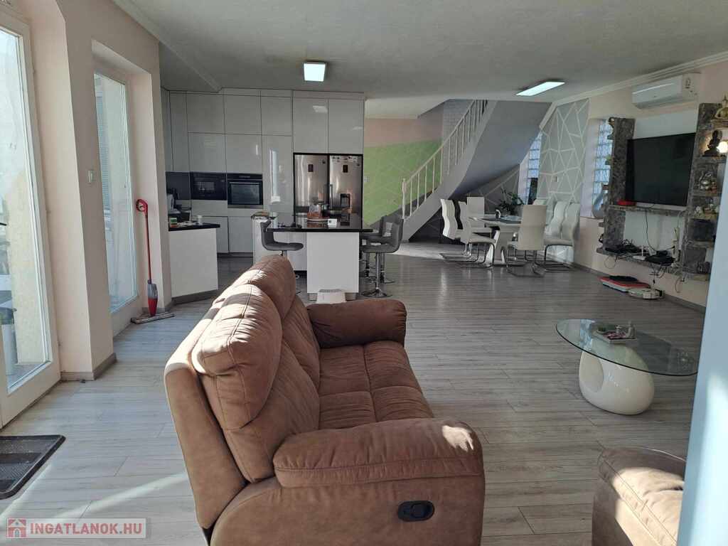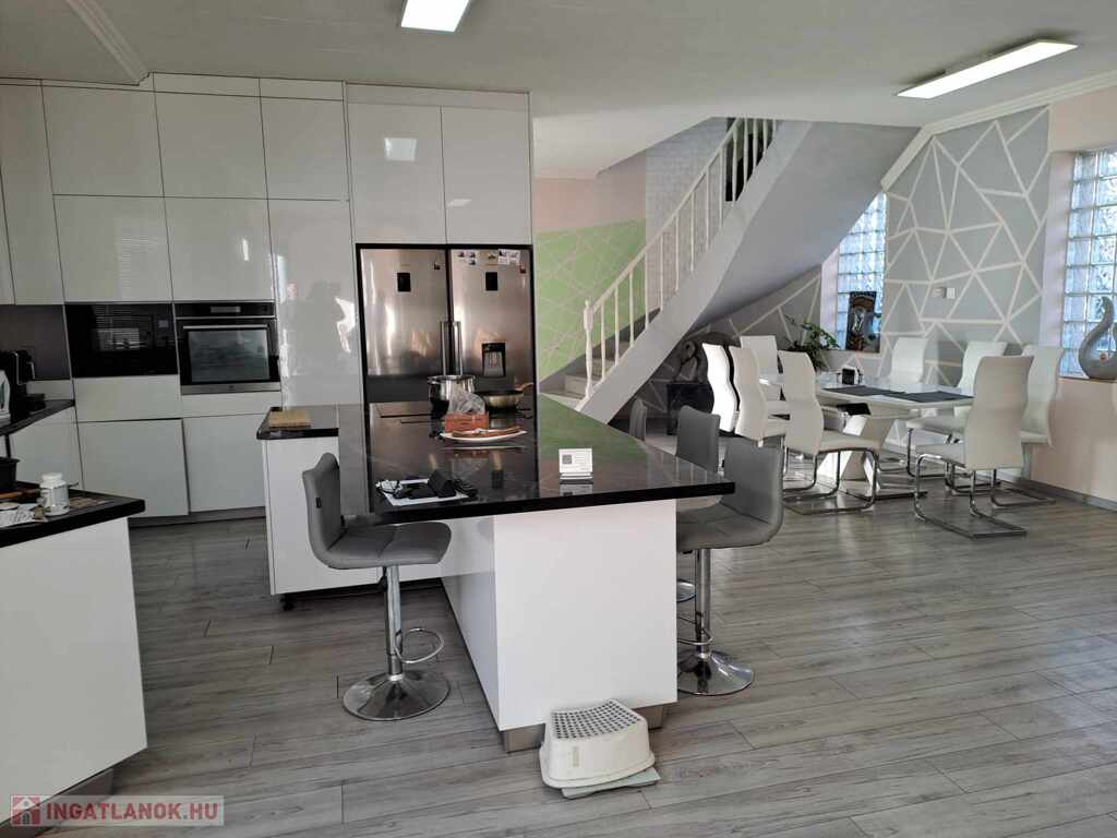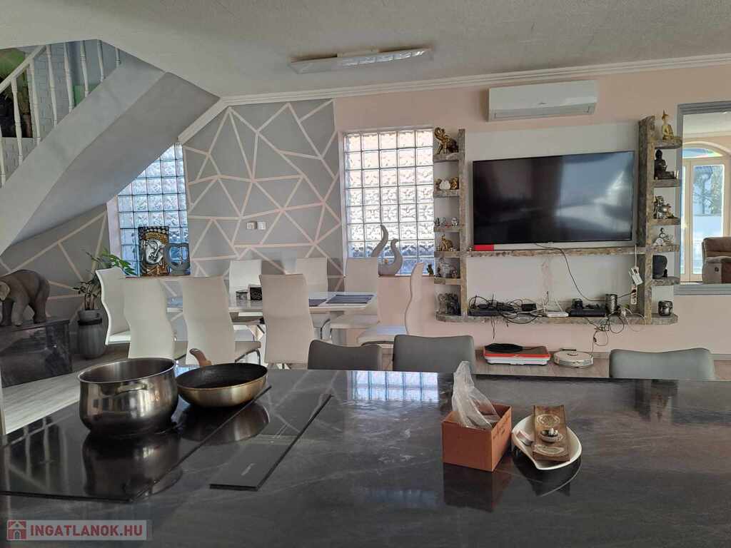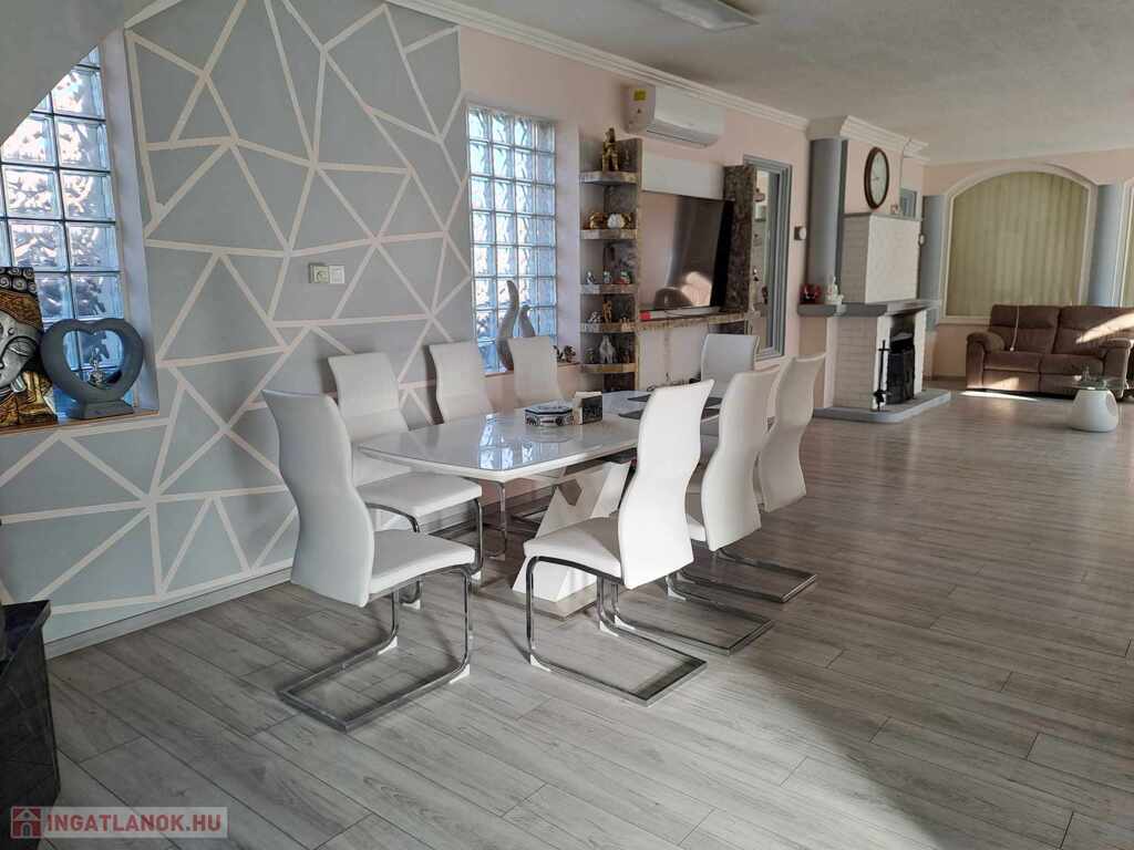 Az 1710 m2- es összközműves telken található délkeleti tájolású 348 m2 - es családi ház, napfényes, kellemes, kényelmes, vendégfogadásra alkalmas tágas terekkel rendelkezik.