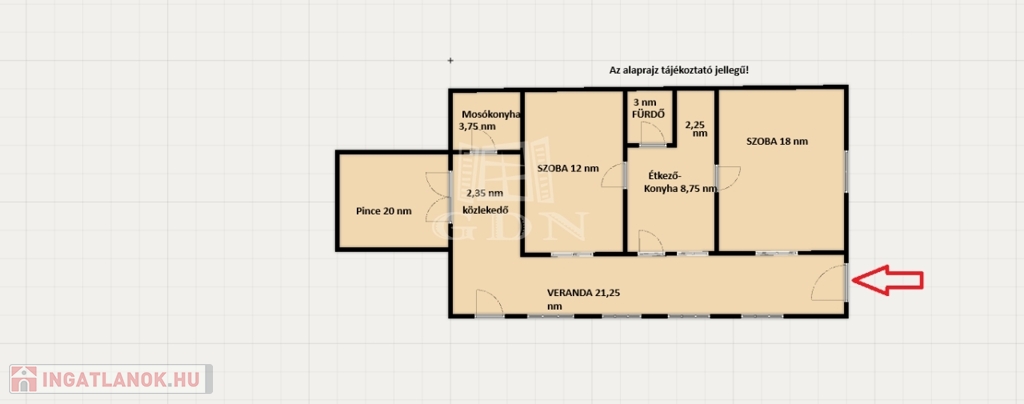 A veranda tölti be az előtér szerepét, de akár télikertként is funkcionálhat nagyságából adódóan. A 20 nm-es pince lehet hobbi szoba, de helyet adhat baráti vagy családi összejöveteleknek is.