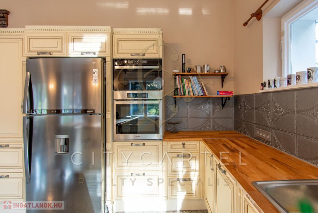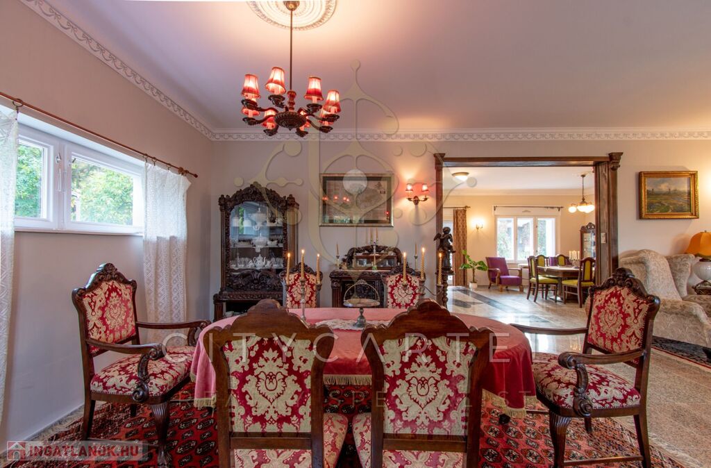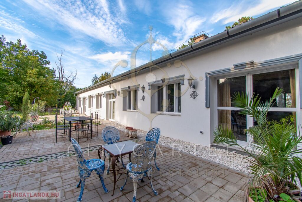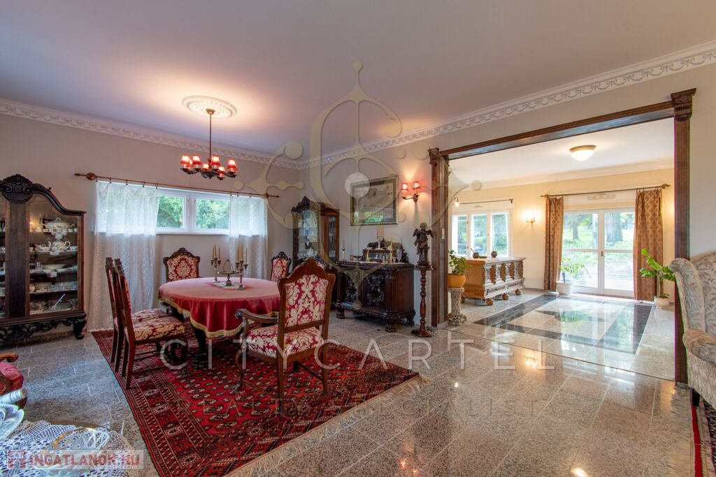 - felújított főépület 500 nm (Lakószint: konyha, ebédlő-társalgó, nappali-hall, kamra, office, lépcsőház, folyosó, powderroom, hálószoba, fürdőszoba káddal és zuhannyal, open concept lakosztály hálóval, fürdővel káddal és zuhannyal valamint bidés WC-vel és garderobe-bal, 2 terasz, Alagsor: garázs, csizmaszoba, folyosó, mosókonyha, mosdó – zuhany – bidés WC, appartament konyhával, hálófülkével, fürdőszoba káddal és WC-vel, amennyiben igény van rá, teljesen bútorozva)