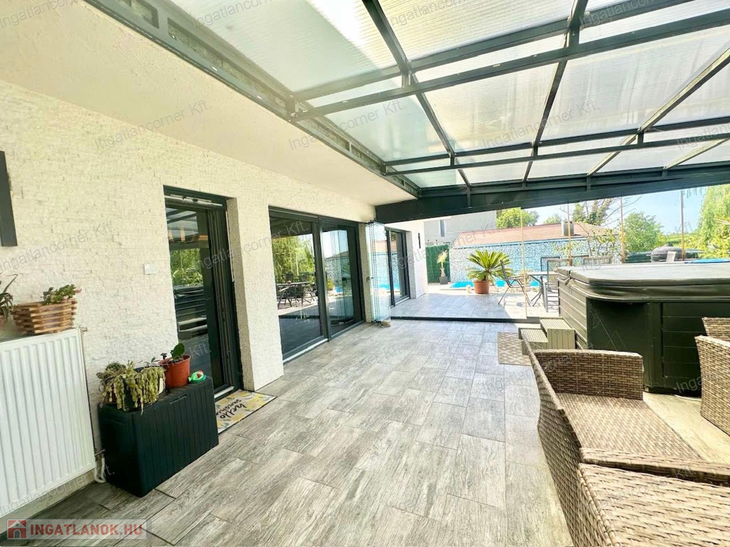 •45 m²-es fedett terasz kemencével, grillezővel, padlófűtéssel
