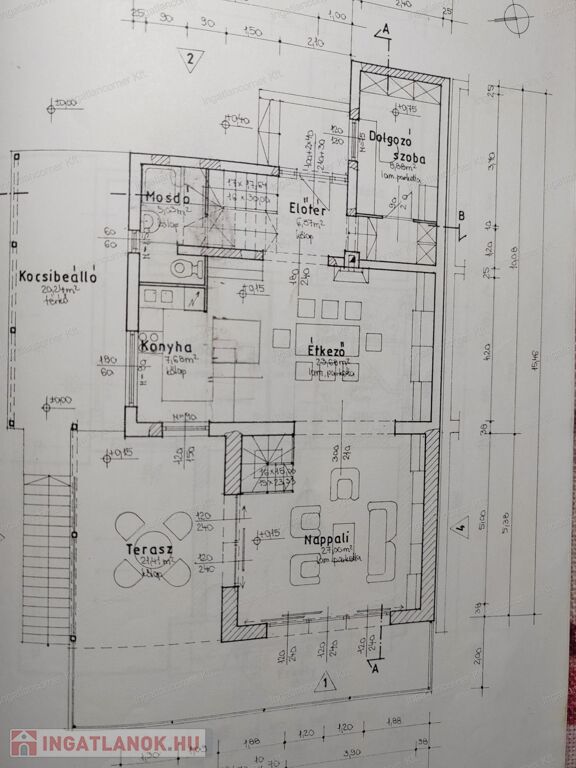 Fedett felső terasz 60 m2, alsó terasz 16 m2.