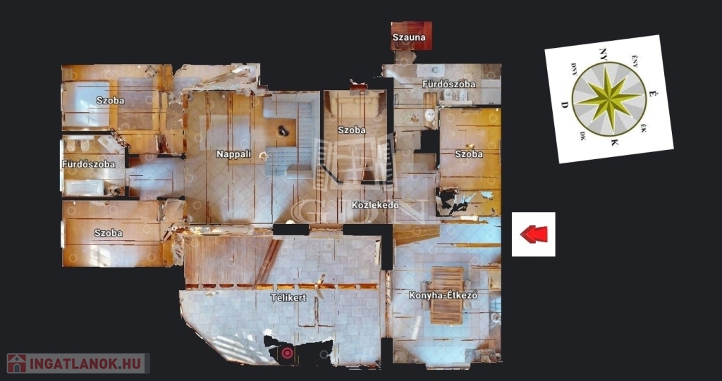 2022-ben MEGÚJULT, a télikert, a nappali, a 4 szoba, az étkezős konyha, a 2 fürdőszoba minőségi szaniterekkel, a szauna és minden helyiségben egy inverteres klíma is kiépítésre került.