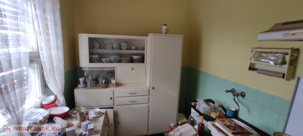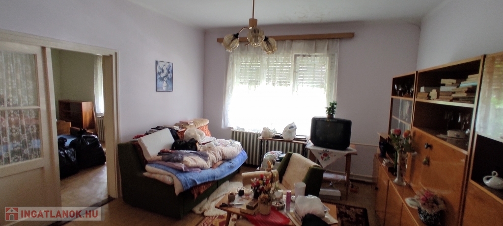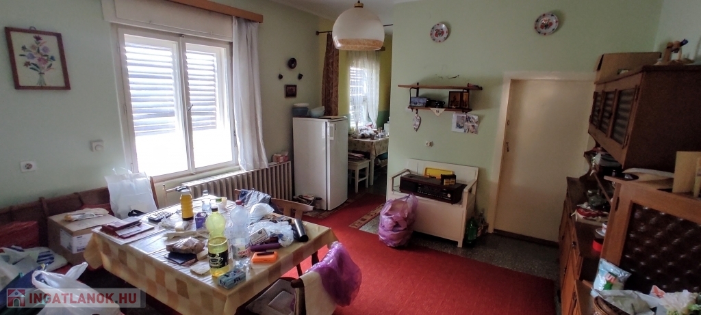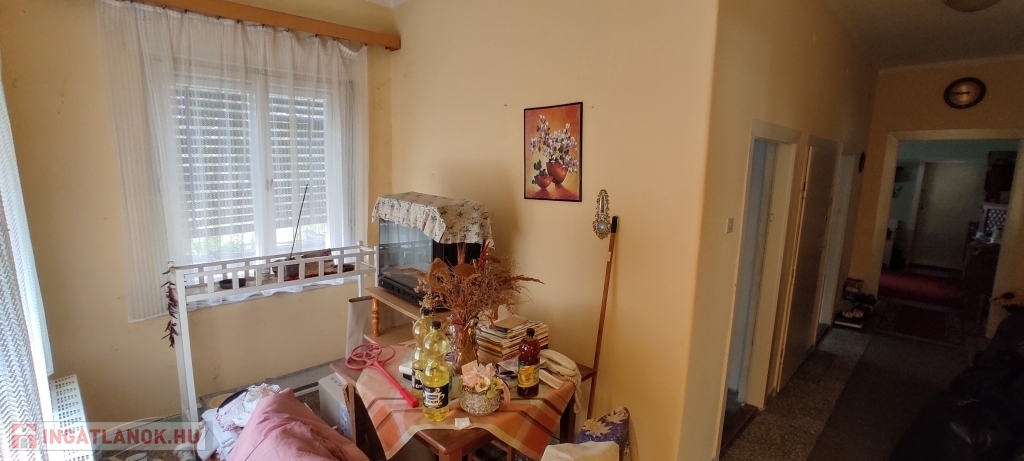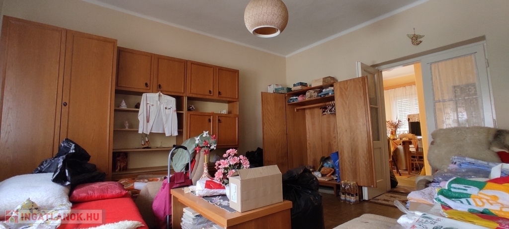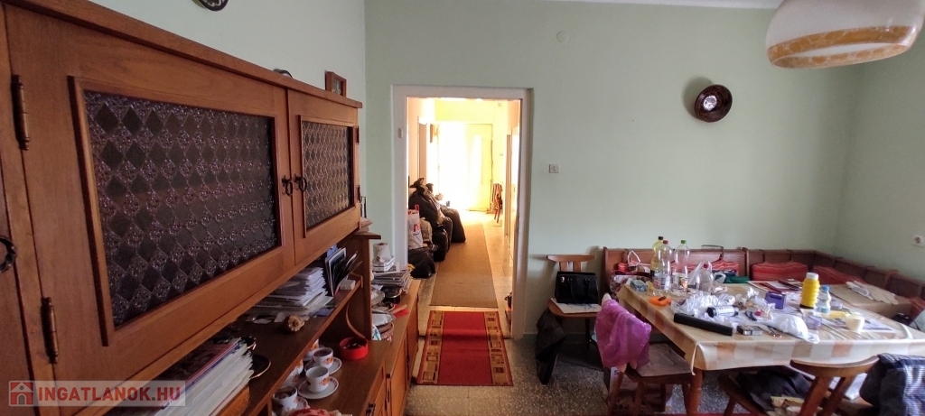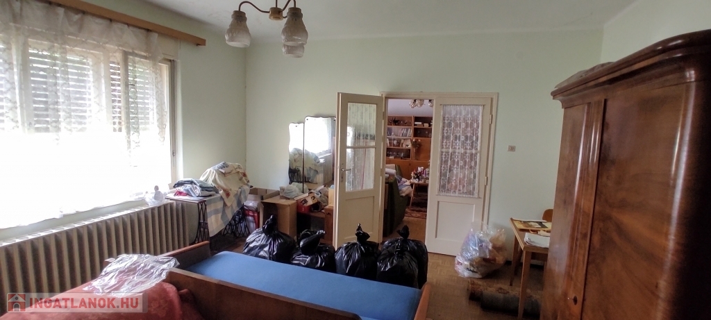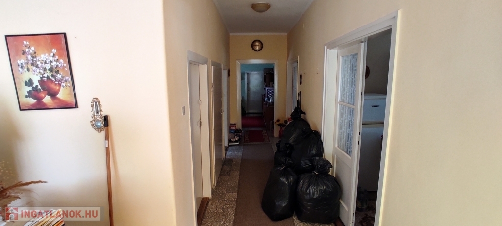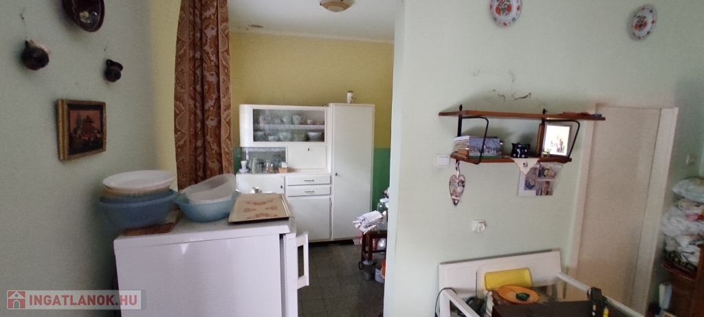 -Helyiségei: lakószinten nagy méretű szobák és étkező, részben külön bejárattal, külön fürdő és WC, külön konyha és étkező, jelenleg 2 kamra, előszoba.
