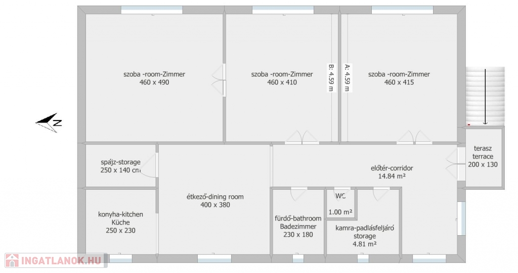 Mérete: 110 nm nettó hasznos alapterület a lakószinten.
