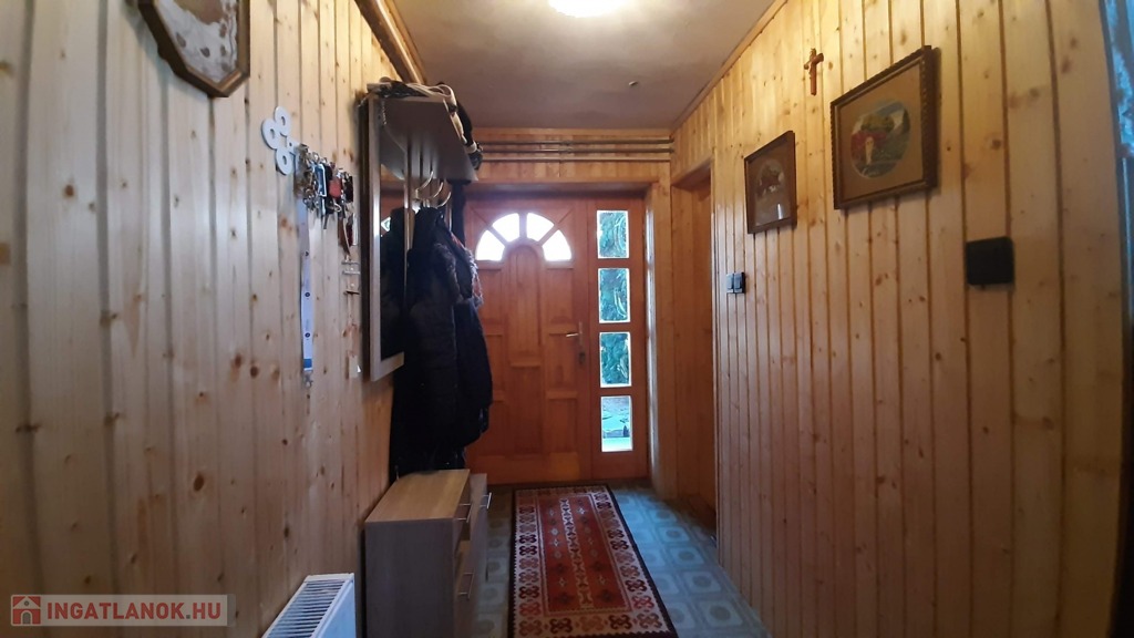 Az előszobából, mely lambéria borítást kapott, nyílik egy mosókonyha.