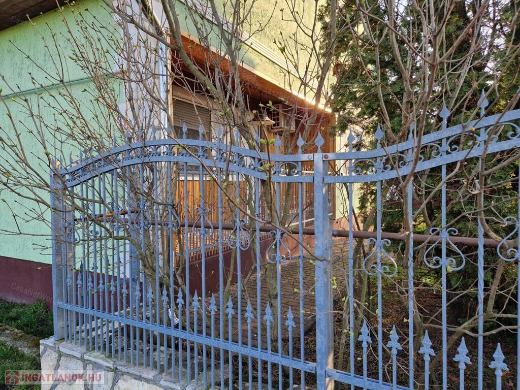 Az utcafrontot igényes kovácsoltvas kerítés díszíti, a teljes telek körbekerített, amely biztonságot és esztétikus megjelenést biztosít.