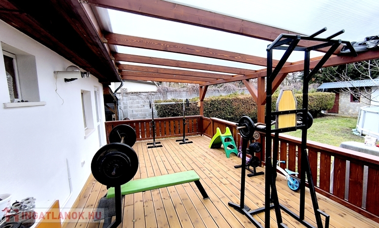 Eladó egy egyedi hangulatú, nagyon jó elosztású családi ház Tárnok Újtelep részén. A ház vegyes falazatú, felújított, hőszigetelt homlokzattal. A teljes belső felújítása 2023-ban történt meg. 2 szoba és egy amerikai konyhás nappali található az ingatlanban, modern új konyhabútorral és konyhapulttal. A két szobában fából készült faltól falig beépített szekrények vannak, melyek szintén 1-2 éve kerültek felújításra. A fürdőszobában új mosdó és WC kagyló, valamint egy mélytálcás zuhanykabin is helyet kapott. A tavalyi évben került beszerelésre egy hűtő-fűtő klíma, ami az egész házat képes lehűteni, vagy befűteni. A fűtést és a meleg vizet egy gázcirkó berendezés biztosítja radiátorokkal és részleges padlófűtéssel. A vastag falaknak, a 3 rétegű műanyag ablakoknak és a viszonylag alacsony belmagasságnak (230 cm) köszönhetően a ház nagyon gazdaságosan kifűthető. A ház éke a szintén tavaly elkészült 30 m2 es fedett terasz borovi fenyő burkolattal. A házhoz csatlakozik egy fedett kocsibeálló (ennek a teteje felújítandó). A kert 606 m2, benne diófa, meggyfa, gránát alma bokor és füge bokor található. Illetve van egy előkészített sziklakert, ami betelepítésre vár. A telek hátsó részén egy téglából épült kb 40 m2 es tároló-műhely épület található 4 kisebb helyiséggel. A ház előtti kisebb kertrész és a kocsibeálló részben térkővel burkolt, elektromos kertkapuval. Ideális kisgyerekes családoknak, vagy idősebbeknek, akik szeretik a kertet, de nem akarnak órákig füvet nyírni. Sétatávolságra óvoda, iskola, boltok, vasútállomás, buszmegálló, csomagpontok. A 6-os, M6-os, 7-es, M7-es utak autóval 10 percen belül elérhetők. Vonattal a Kelenföldi vasútállomás a háztól sétával és a vonatúttal együtt fél órán belül elérhető.