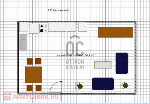 A 2006-ban épültnél nappali-konyha-étkező van az alsó szinten ami 36 m2, a tetőtérben pedig 2 hálószoba, közlekedő és fürdőszoba lett kialakítva.
