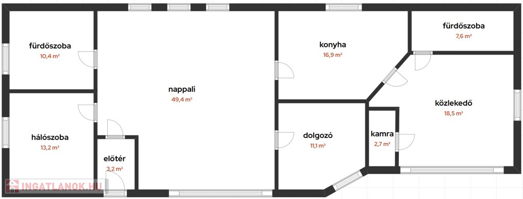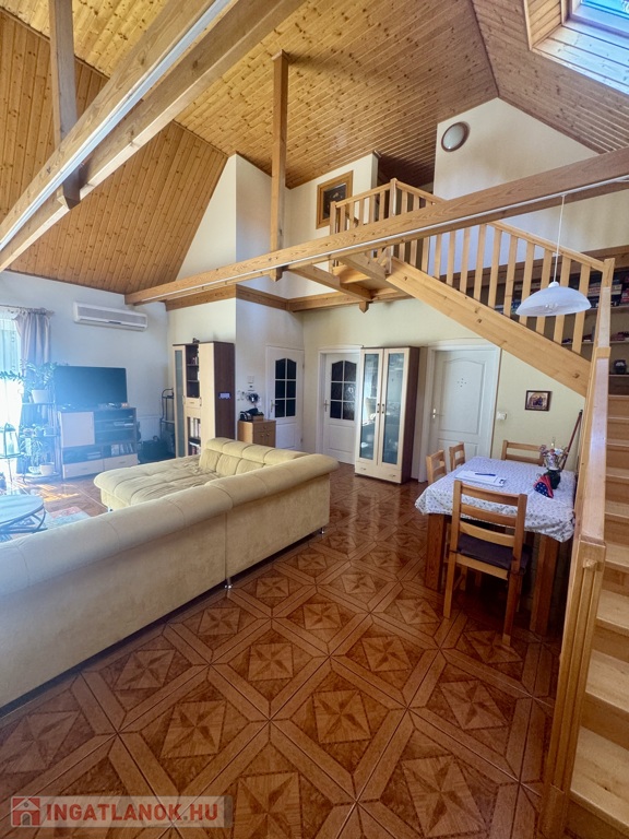 Az ingatlan kétszintes, összesen kb. 170 nm-es. Alapterülete 110 nm, melyet a galériák beépítésével bővítettek. Így akár többgyermekes családok számára is ideális, tágas életteret biztosít.