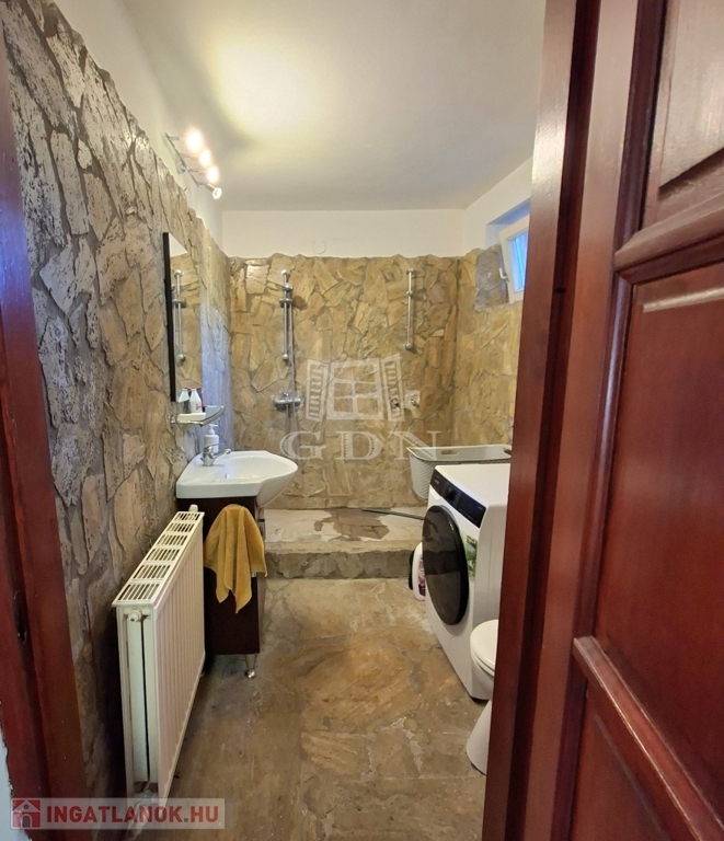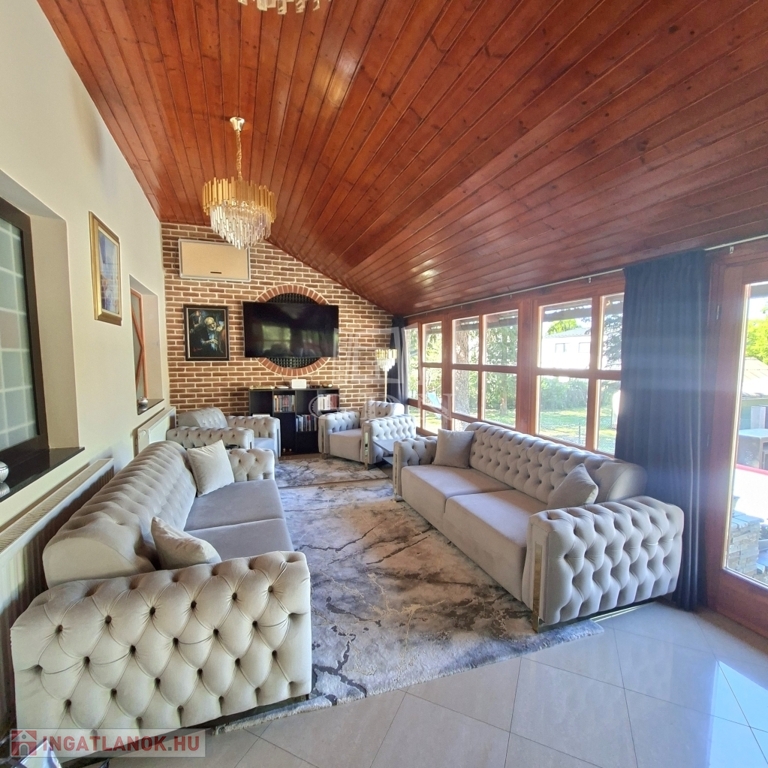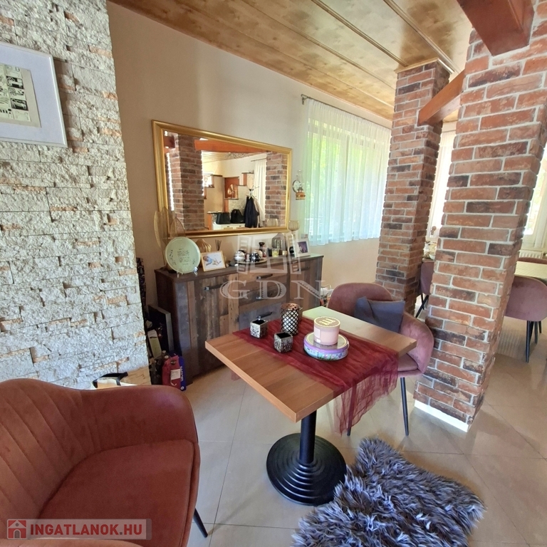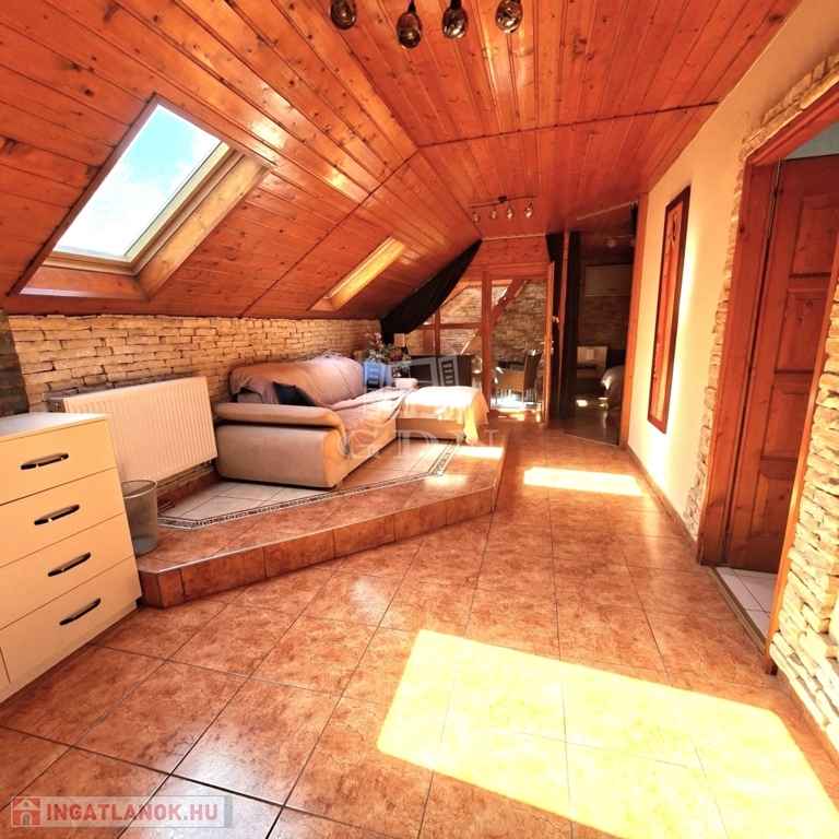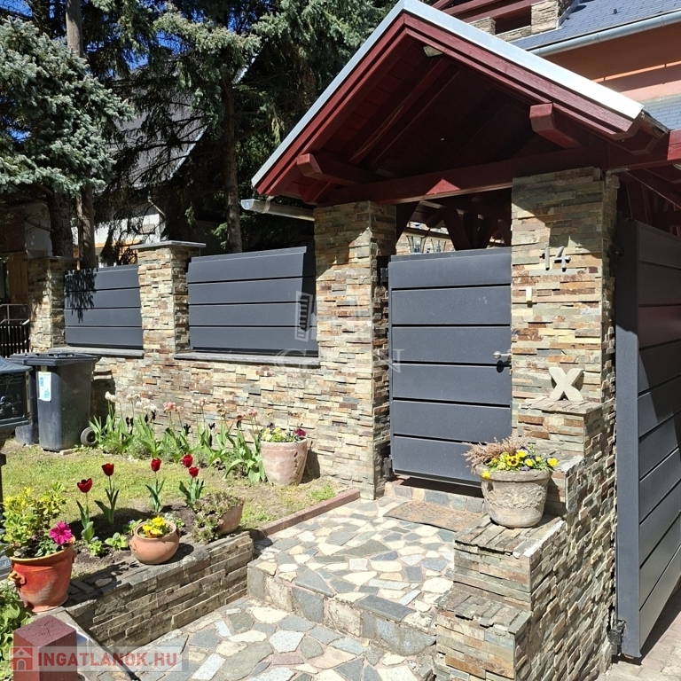 És hogy mitől különleges? Mert nagyon szép kőburkolatokkal látták el, mert ebben a természetközeli ingatlanban jó minőségű fa nyílászárók vannak, nagyon szép falépcsőn tudunk feljutni a tetőtérbe. Mert az udvaron igazán lehet pihenni, azért mert csend van, mert kettő, fedett pihenősarkot is kialakítottak. A szépen gondozott kertben van bőven hely a kertibútorok, napernyők számára így barátokkal és a nagyobb családdal is kényelmesen tudunk kikapcsolódni. Egy kisebb medencében lehet fürdeni, hűsölni meleg napokon. A kerítés is kőburkolat és gondozásmentes kerítéselemekből áll, ezzel teljesen intim szférát hoztak létre. Két utca felől is be tudunk jutni kapun keresztül autóval, a harmadik oldalon pedig személyi bejárat van.