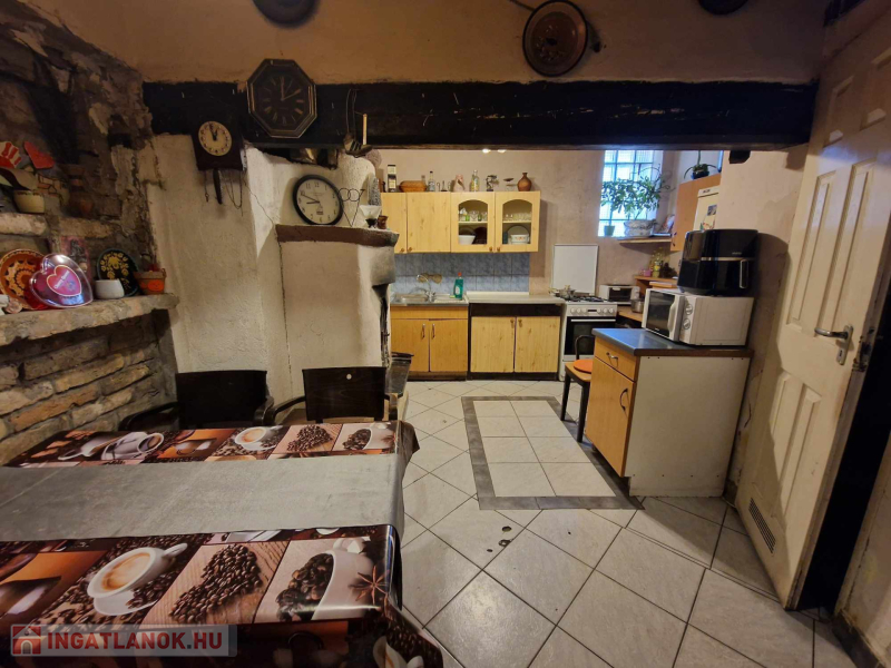 A házrész alapterülete 67nm és teljes felújításra szorul.