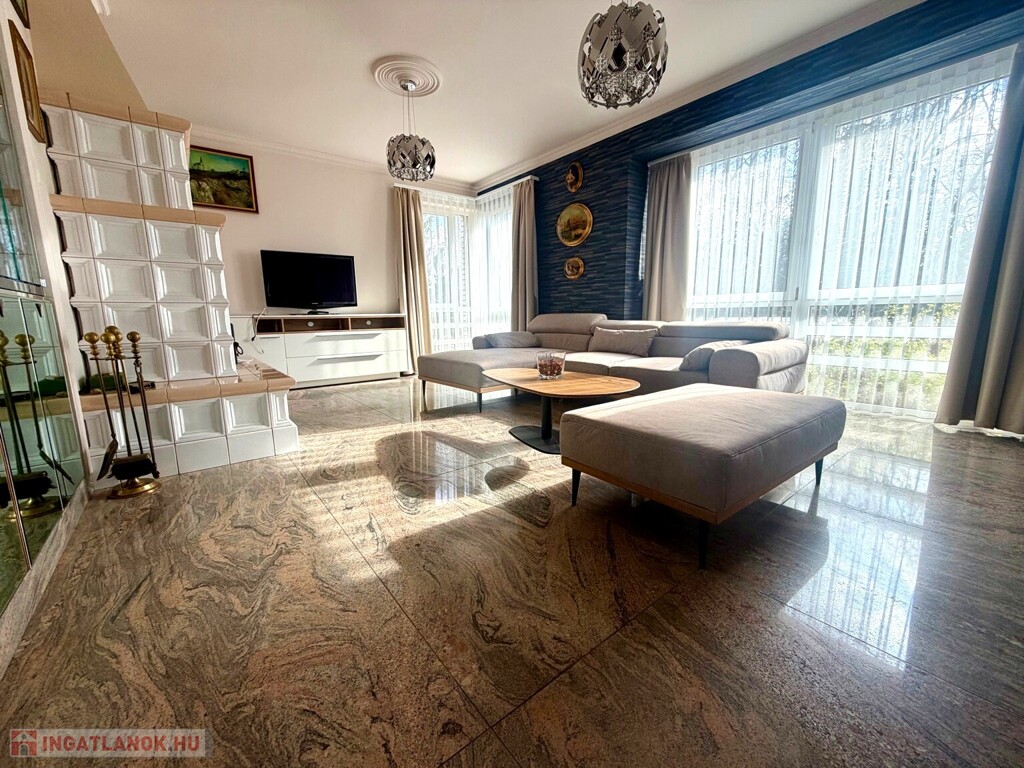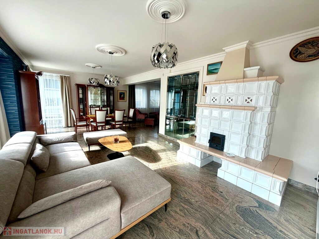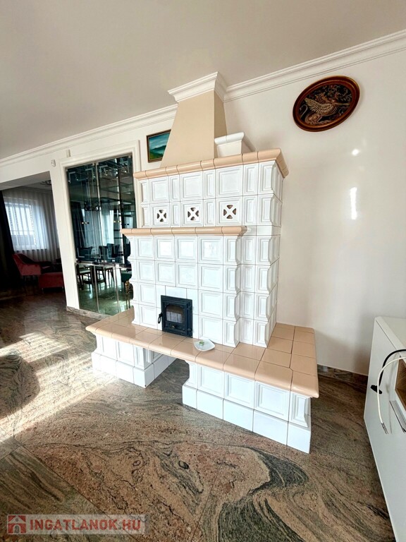 A ház anyaghasználata kifejezetten prémium és időtálló: gránit burkolatok, tölgy parketta, egyedi fehér cserépkályha – olyan elemek, amelyek nemcsak esztétikai értéket képviselnek, hanem hosszú távon is értéktartók.