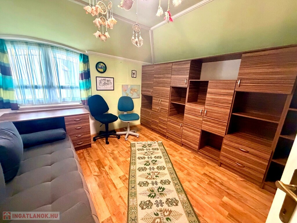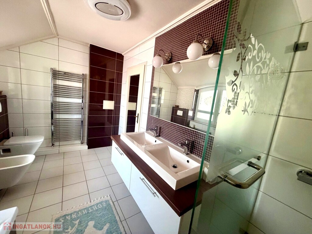 Az emeleten 3 hálószoba, egy tágas fürdő és egy külön gardróbhelyiség található.