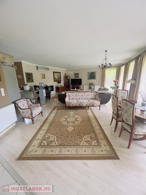 Ez a praktikus kialakítású, 200 m²-es, nappali + 4 hálószobás, duplagarázsos családi ház, egy 1000 m²-es, gyönyörűen parkosított telken helyezkedik el. Az ingatlan külső és belső megjelenésében is az igényesség, időtállóság és kifinomult elegancia ötvöződik.