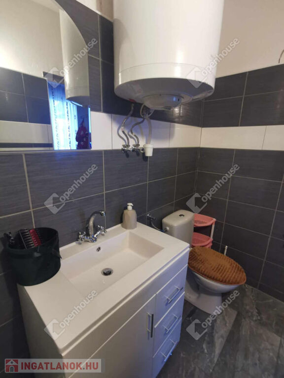 Az alsó szinten található a konyha-étkező, nappali és két nagyméretű szoba, mindegyik nagy ablakokkal, amelyek természetes fényt árasztanak. A fürdőszoba bojlerrel és automata szellőztetéssel van felszerelve, biztosítva a maximális kényelmet.