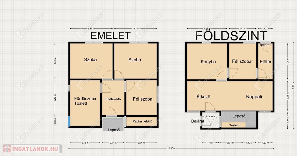 -Kétszintes kialakítás, ami lehetővé teszi két lakrész kialakítását is