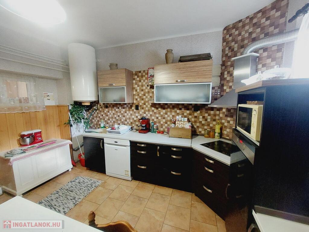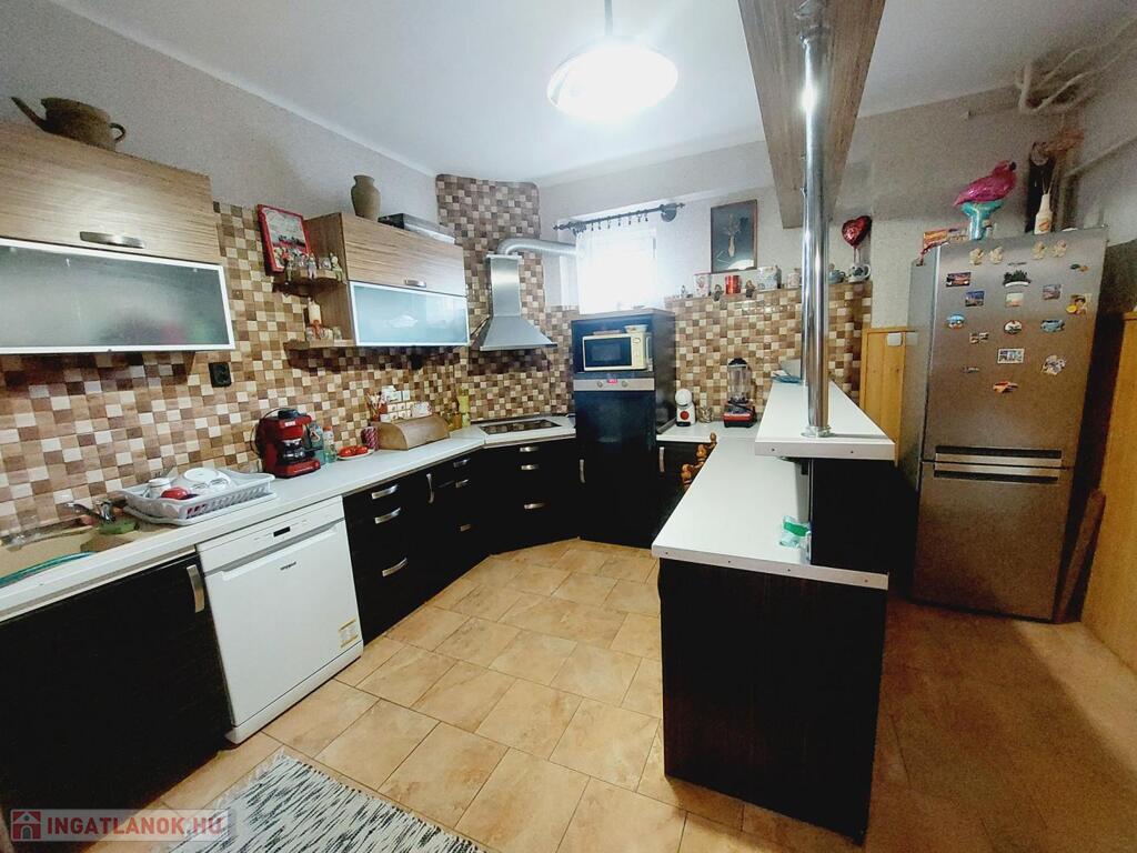 A ház az 1950-es években épült kőből és téglából, az évek alatt folyamatosan karbantartották, az elmúlt 10 éveben az alsó szinten kicserélték a burkolatokat, nyílászárokat, mindenhova 2 rétegű modern műanyag nyílászáró került, redőnnyel, szúnyoghálóval felszerelve. A konyhát külön helyisége helyezték át, ezzel egy tágas nappali és étkező került kialakításra. A nappali dísze az épített, vízteres cserépkályha, mely az egész ház fűtését ellátja, de igény szerint gázkazán is a kényelmünket szolgálja.