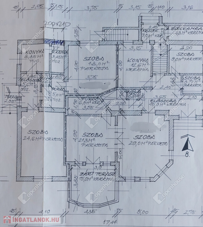 Parkolás: saját garázs (24 m²) és utcai parkolóhely.