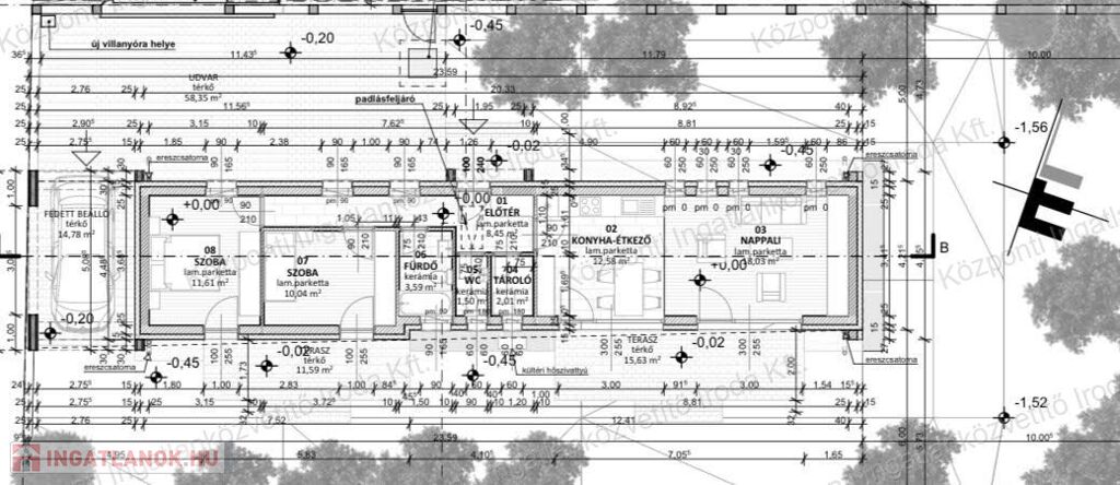 Az energiatakarékos családi ház megbízható, több éves tapasztalattal rendelkező kivitelezőtől, magas műszaki tartalommal készül, modern, minden igényt kielégítő belső elrendezéssel teszi komfortossá az ide költözők mindennapjait. A tervezésnél egyik fő szempont volt, hogy a terek kényelmes, ideális méretűek legyenek. Az ingatlanban az alábbi helyiségek kerülnek kialakításra: konyha-étkező-nappali, 2 hálószoba, fürdőszoba WC-vel, külön WC kézmosóval, előtér, tároló, 2 térkövezett terasz (16 m2 és 12 m2). Az otthon melegének biztosításához hőszivattyú kerül kiépítésre. A telek területe 517 m2. Parkoláshoz fedett beálló épül a ház részeként.
