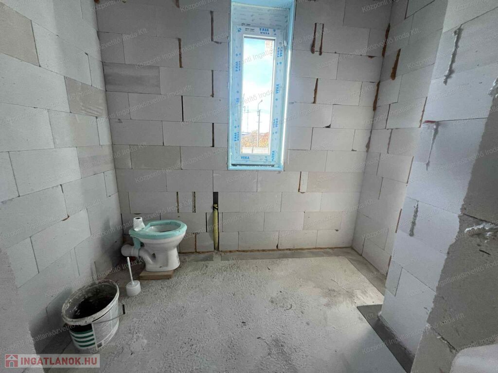 Az energiatakarékos családi ház földszintes, br. 84 m2-es, magas műszaki tartalommal készül, modern, minden igényt kielégítő belső elrendezéssel teszi komfortossá az ide költözők mindennapjait. A tervezésnél egyik fő szempont volt, hogy a terek kényelmes, ideális méretűek legyenek. Kialakításra került egy konyha-étkező-nappali, 3 szoba, előtér, közlekedő, fürdőszoba, WC. Az átadás jövő év első felében várható, így még a leendő tulajdonosnak lehetősége van a belső burkolatok kiválasztásában. Az otthon melegének biztosításához hőszivattyú kerül kiépítésre, H tarifával, padlófűtéses hőleadással. A telek területe 242 m2. Parkoláshoz térkövezett beálló épül.