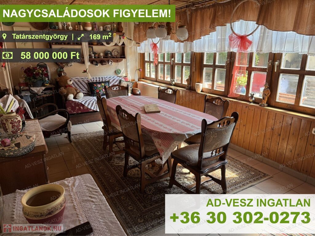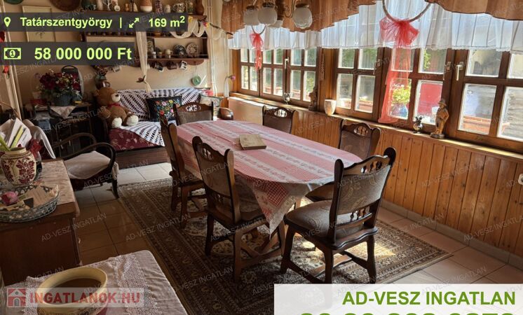 Tatárszentgyörgy Szálláska részében eladó egy ideális családi ház, vagy inkább nevezhetnénk minifarmnak is, amely tökéletes választás lehet azok számára, akik egy tágas, és kényelmes otthonra vágynak, és szeretnének állatokat tartani. A telek mérete 1806m2 , az ingatlan alapterülete 169m2, ami elegendő teret biztosít a családi élethez. A ház 1995-ben épült, 2000-2005 között folyamatos felújításokon esett át, és átlagos állapotban várja új tulajdonosát, aki saját ízlésére formálhatja.