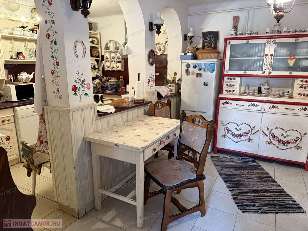 A házban 4 szoba, 2 nappali, konyha-étkező, mosókonyha, spejz, és egy gardrób található, amelyek sokféle lehetőséget kínálnak a berendezés, és a funkciók kialakítására. Illetve rendelkezik egy, külön szoba-konyha-fürdőszoba résszel is, amely nagyobb gyereknek, vagy szülővel költözők számára is ideális lehet. Az épület vegyes építési módja biztosítja a tartósságot, és a stabilitást, míg a cserépkályha, és a gázfűtés kellemes meleget biztosít a téli hónapokban. A másodlagos vegyes tüzelésű fűtési lehetőség pedig gazdaságos megoldást kínál.