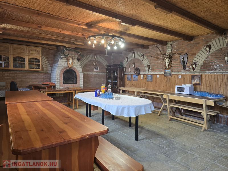 A családi együttlétek, baráti összejövetelek és a nyugodt hétvégék helyszíne lehet a külön épületben kialakított vadászterem, ahol szintén kialakításra került fürdőszoba és különálló wc is. A melléképület alapterülete 114 nm.