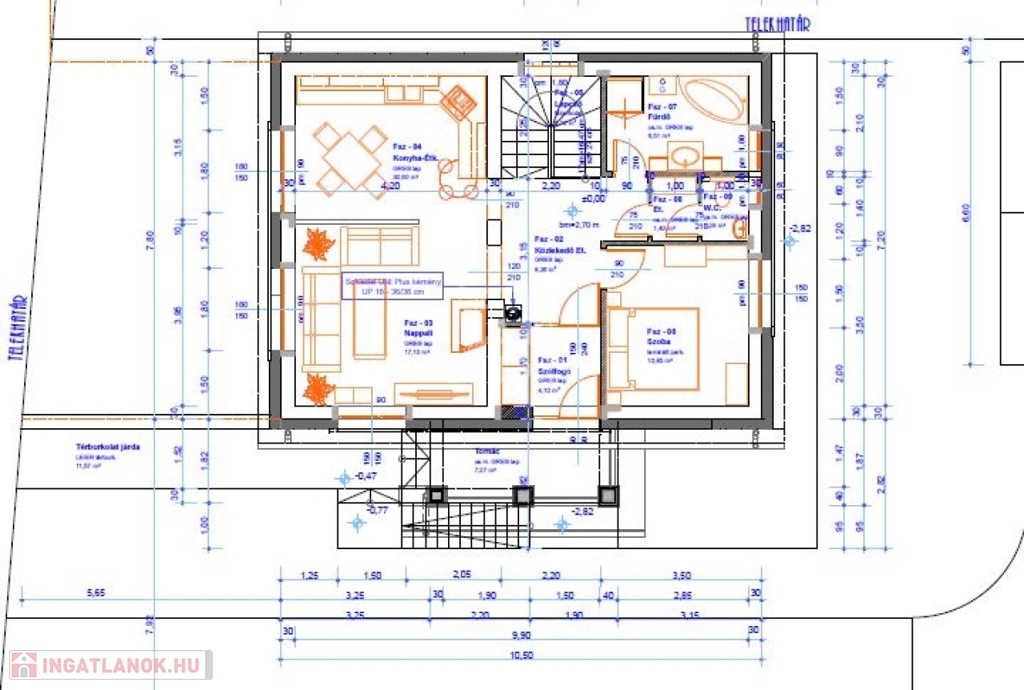 Mindkét szintre van külön bejárat, tehát ideális választás lehet több generáció összeköltözésére is.