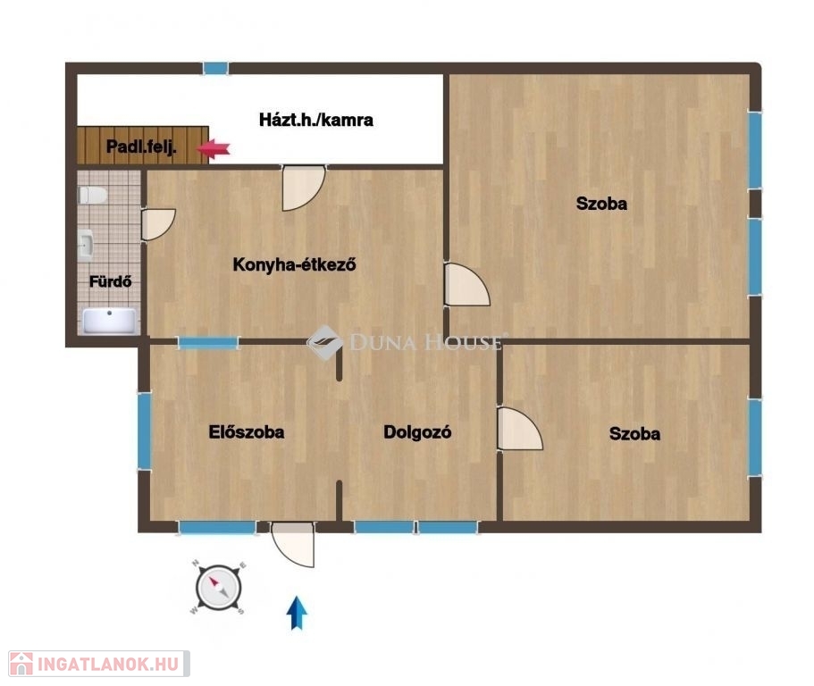 - a helyiségek a fürdőszoba kivételével parkettásak