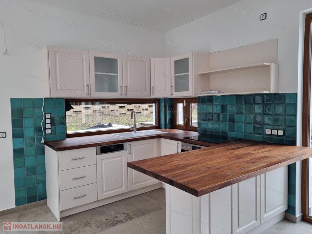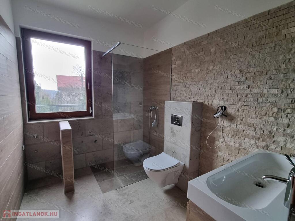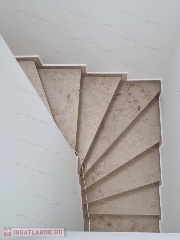 - emelet: háztartási helyiség, egy toalett, három szoba rálátással a környező tájra és a Balatonra