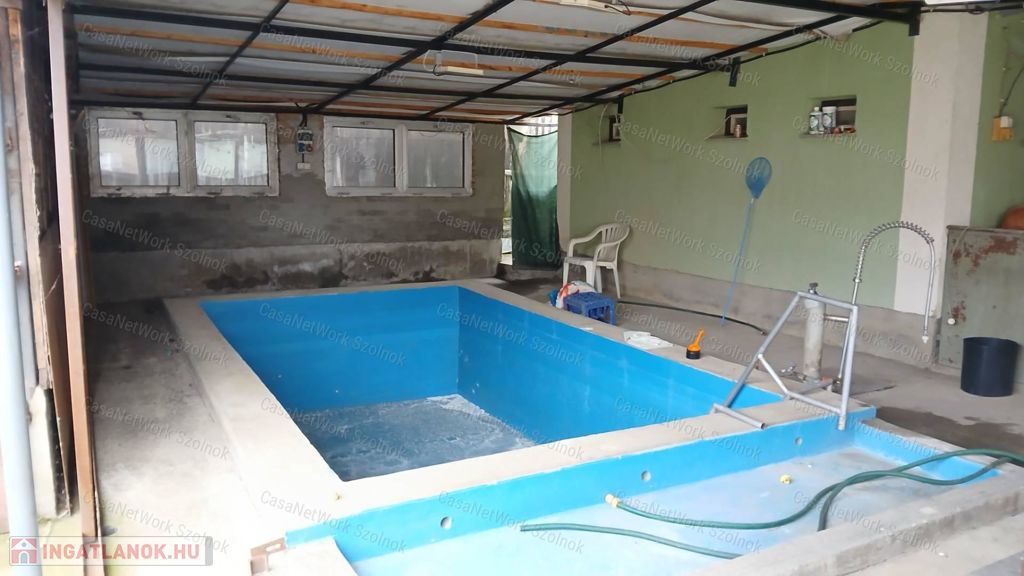 A főépülettel egybeépült egy fedett gépkocsi beálló, aminek folytatásában egy vendéglátó egység nagy fűthető teremmel, kiszolgáló pultal, raktárral és vizesblokkal épült. Kis befektetéssel teljes értékű lakótérré alakítható Az udvaron található még egy füthető medence és egy dupla garázs is, ami most műhelyként funkcionál.